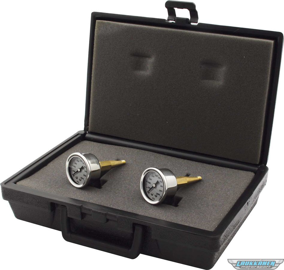 Brake Pressure Gauge - 0-1000 psi - Mechanical - Analog - Dual Gauges - 1/8 in NPT - White Face - Case Included - Kit