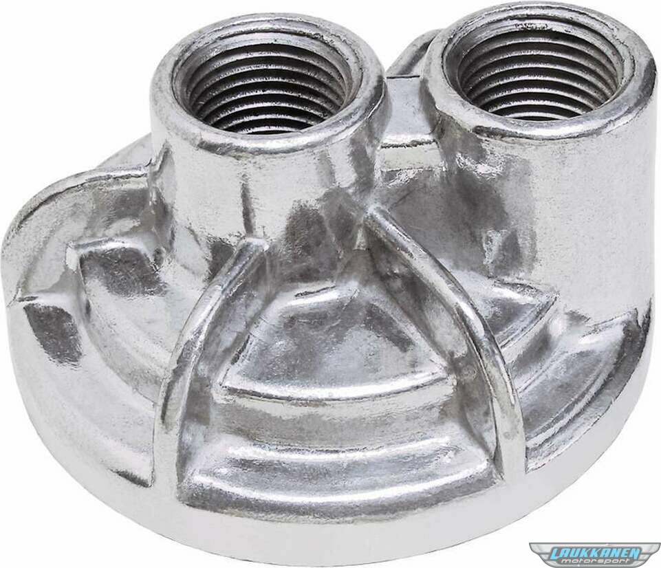 Oil Filter Adapter - Bypass - 3/4-16 in Center Thread - 1/2 in NPT Female Inlet - 1/2 in NPT Female Outlet - Aluminum - Various Applications - Each