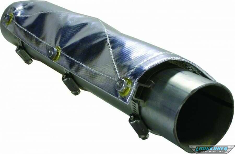 Tuotteen kuvausExhaust Heat Shield - 4 x 12 in - Clamp-On - Aluminized Fiberglass - Silver - Up to 3.5 in Tubing - Kit - 11650