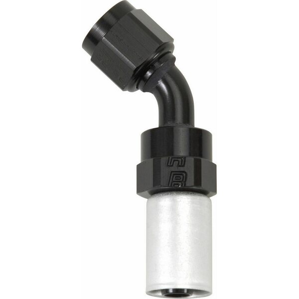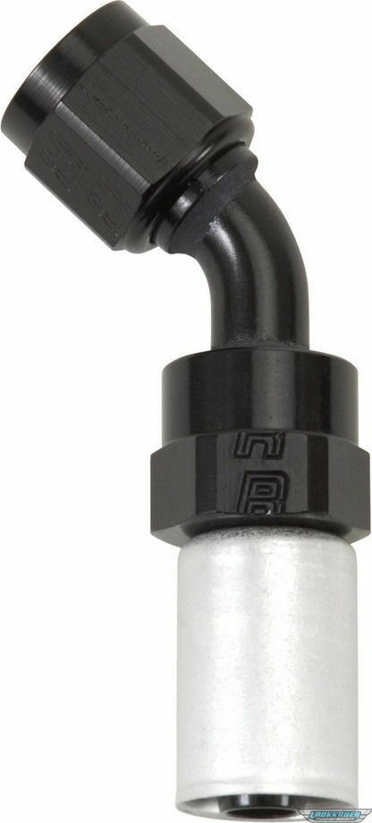 Fitting - Hose End - Crimp-On - 45 Degree - 6 AN Hose Crimp to 6 AN Female - Aluminum - Black / Silver Anodized - Each