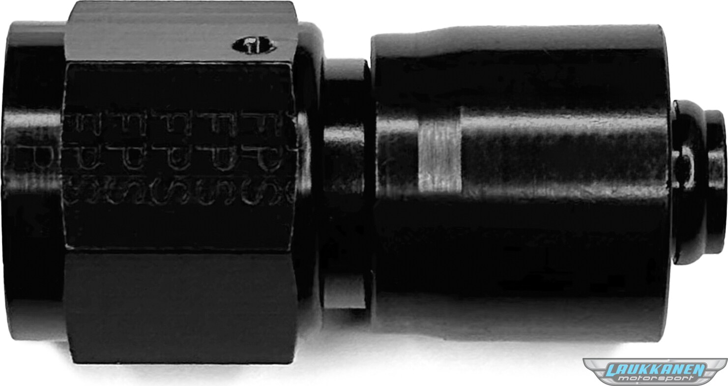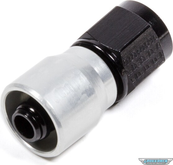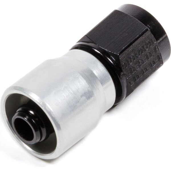Fitting - Hose End - Sport-Crimp - Straight - 6 AN Hose Barb to 6 AN Female - Swivel - Black / Clear Anodized - Each