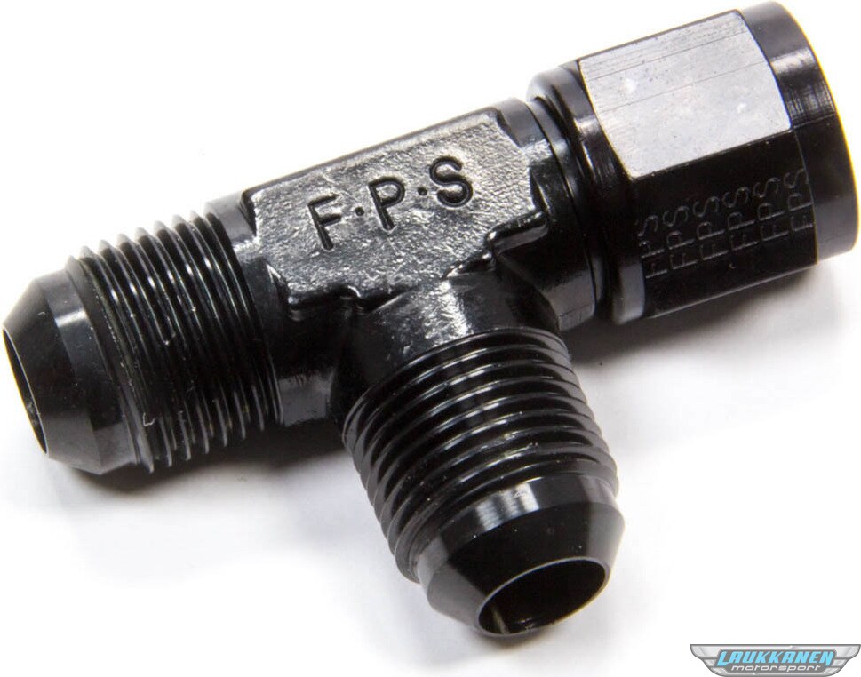 Fitting - Adapter Tee - 10 AN Male x 10 AN Male x 10 AN Female Swivel - Aluminum - Black Anodized - Each
