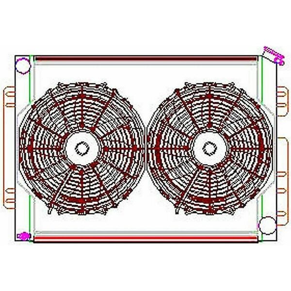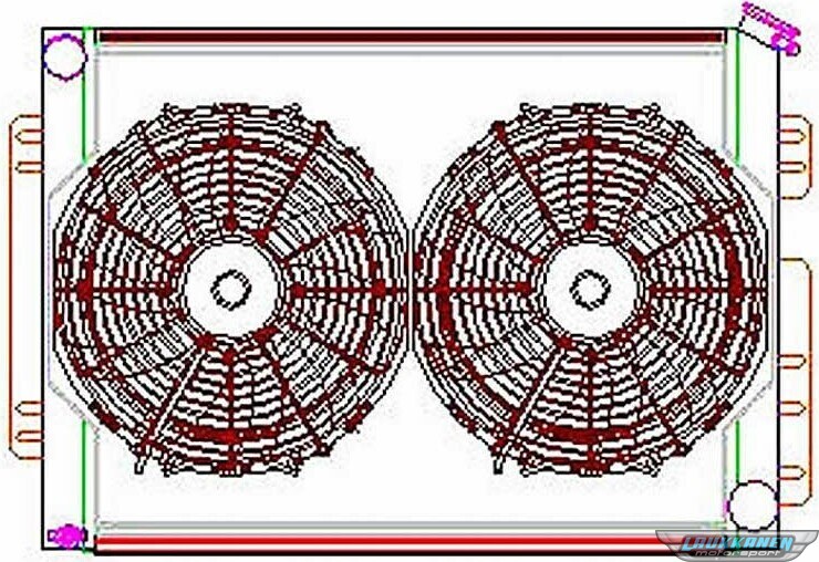 Overall Size: 26-1/4" x 18-5/8" x 7-1/8"Inlet: Top Left, 1-1/2"Outlet: Bottom Right, 1-3/4"Fan: Dual 12" , Manual Transmission