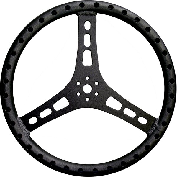 Steering Wheel - 15 in Diameter - Flat - 3-Spoke - Drilled Shot Peened Grip - Aluminum - Black Powder Coat - Each