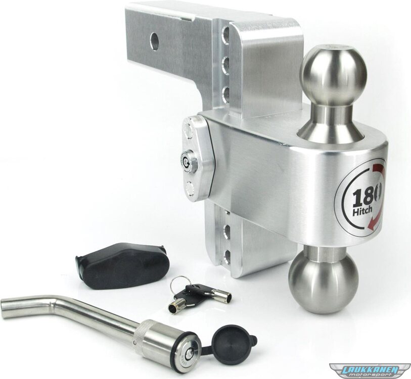 Tuotteen kuvausBall Mount Hitch - 2-1/2 in Shaft - 2 / 2-5/16 in Hitch - 6 in Drop - 8000 / 18500 lb Capacity - Keyed Alike - Aluminum / Stainless - Natural - Kit