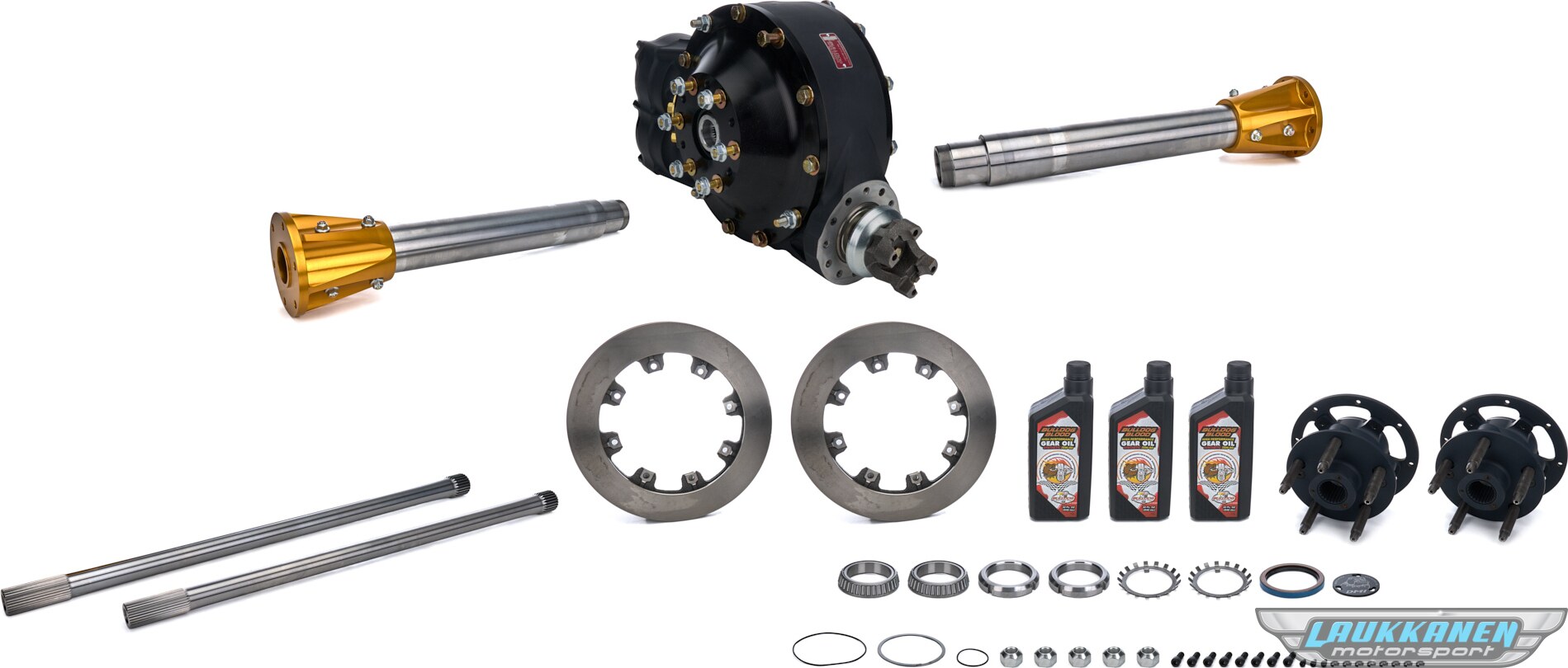 Saturday Night Special EZ Series - 60 centered 100% magnesium center section and bells O-ringed rear cover Inspection plug and fill level plug Breather assembly Aluminum spool Correct length center hardware Bell to tube hardware -10an Fitting for fill can Precision ground heat treated lower shaft Black Thermal coating Bulldog blood gear oil Low drag seals Complete package w/2.5 GN axle tubes, gun-drilled axles, billet steel hubs & 11-3/4 x .810 vented rotors.