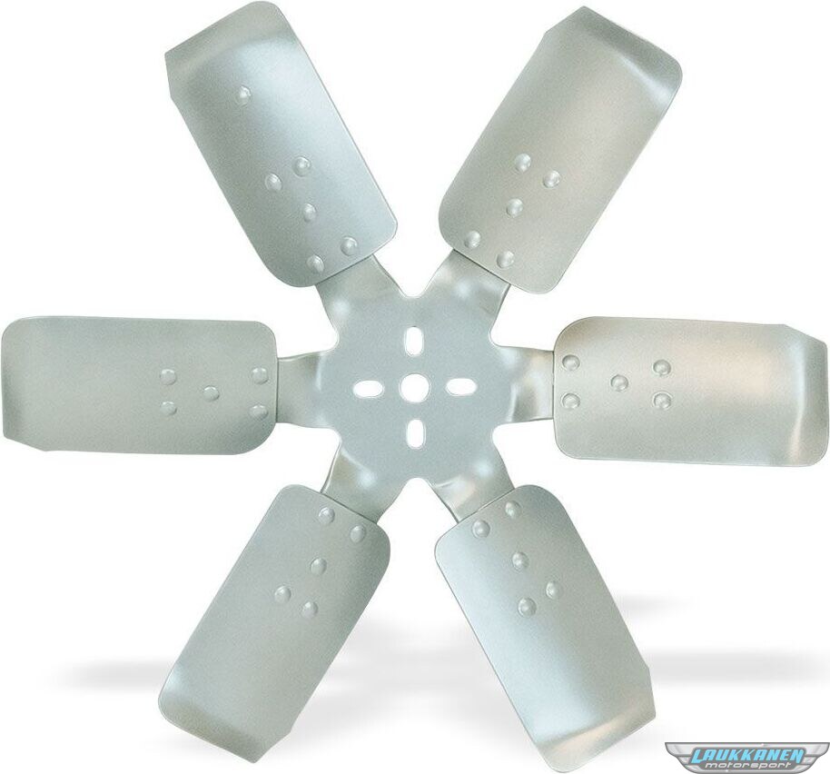 Tuotteen kuvausMechanical Cooling Fan - Standard Rotation - Flex Fan - 15 in Fan - 6 Blade - 5/8 in Pilot - 1-3/4 to 2-1/2 in Bolt Pattern - Steel Hub / Aluminum Blades - Silver Paint - Each