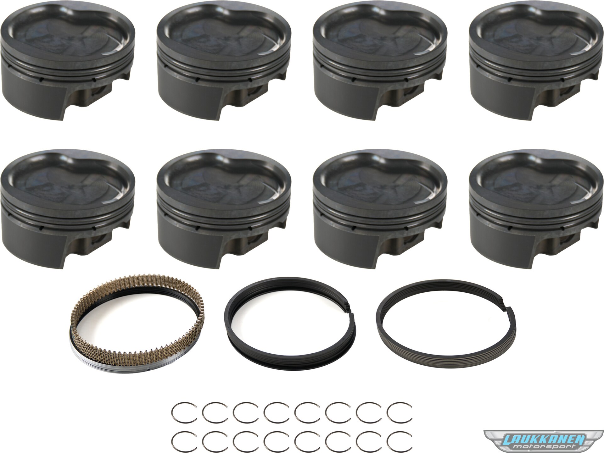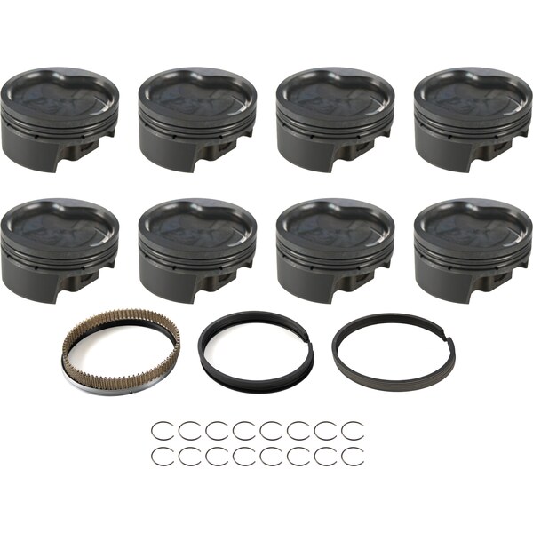 Tuotteen kuvausPiston - Power Pak - Forged - 4.390 in Bore - 1.5 mm x 1.5 mm x 3.0 mm Ring Grooves - Minus 38.0 cc - Big Block Ford - Set of 8