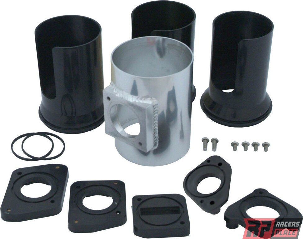Intake Tube Adapter - Mass Air Sensor to 3 in Tube - Calibration Inserts - Aluminum - Polished - Universal - Kit