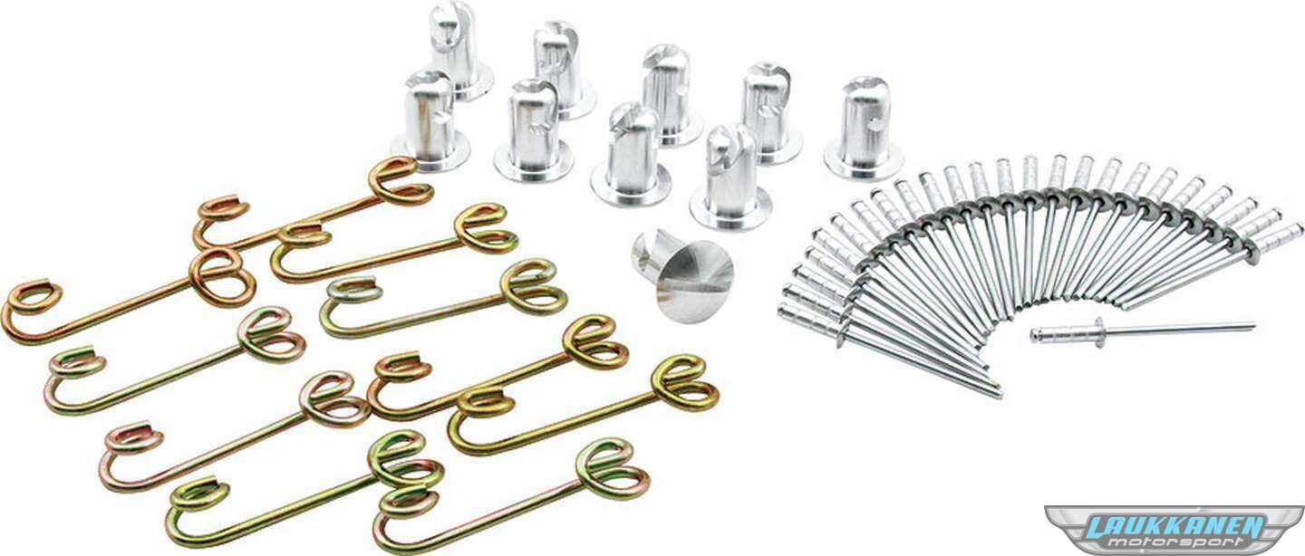 Kit includes the following components:ALL19280 Oval Head Fasteners ALL19286 Oval Head Fasteners ALL19330 Quick Turn Springs 1-3/8in .375 ALL18198 1/8in Alum Rivet Silver