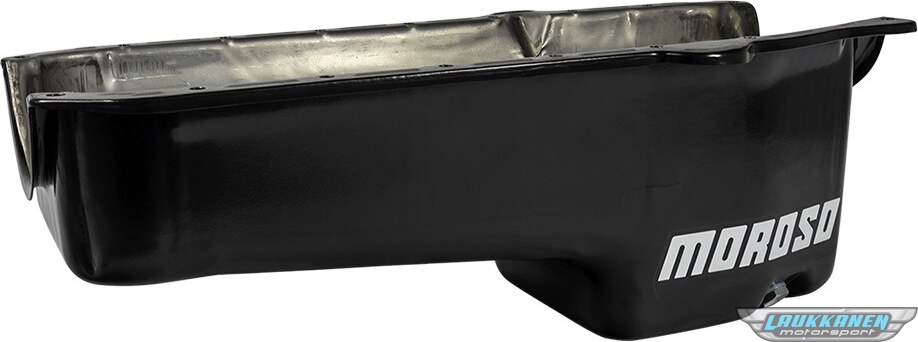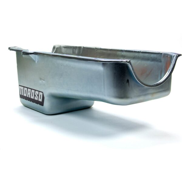 Tuotteen kuvausEngine Oil Pan - Stock Replacement - Rear Sump - 5 qt - 7-1/2 in Deep - Steel - Zinc Oxide - Small Block Chevy - Each