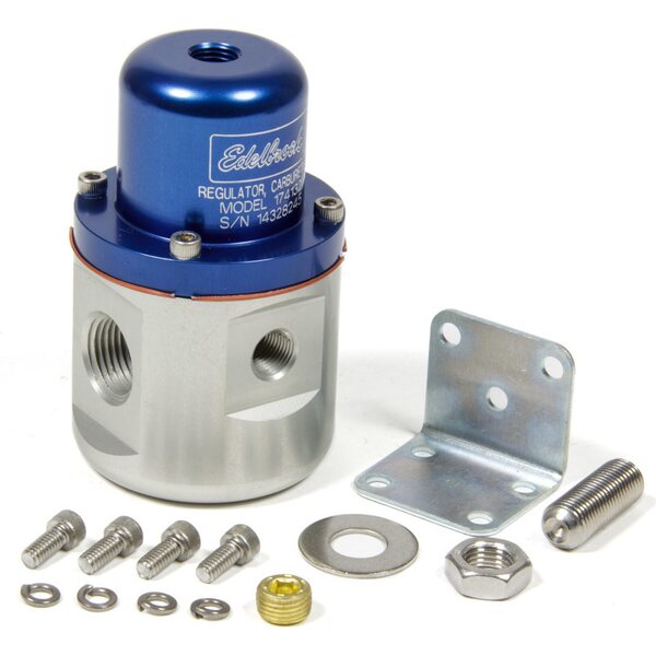Tuotteen kuvausFuel Pressure Regulator - 5 to 10 psi - In-Line - 3/8 in NPT Female Inlets - 3/8 in NPT Female Outlet - 3/8 in NPT Female Return - 1/8 in NPT Port - Bypass - Aluminum - Blue / Clear Anodized - E85 / Gas / Methanol - Each
