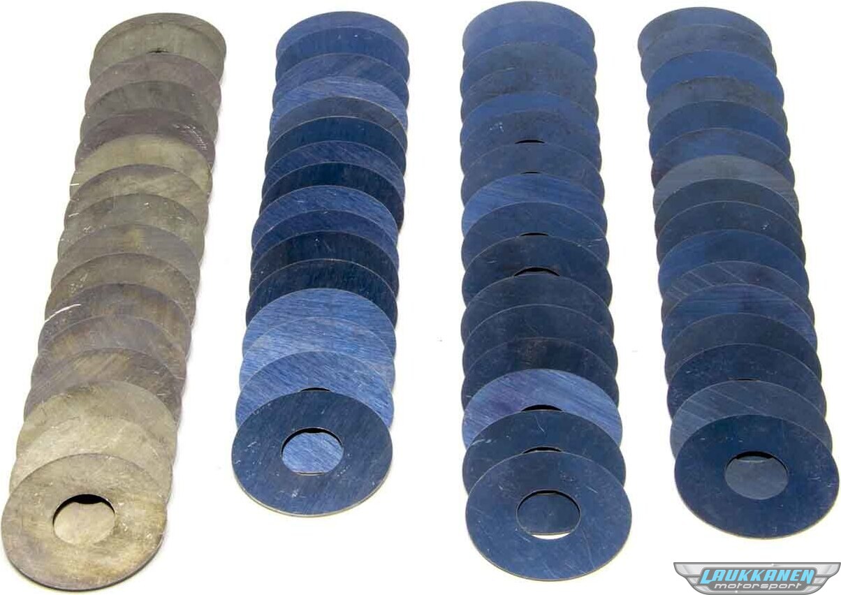 Valve spring shim kit for precise installed height adjustment. Suitable for applications requiring 1.500 in diameter shims.