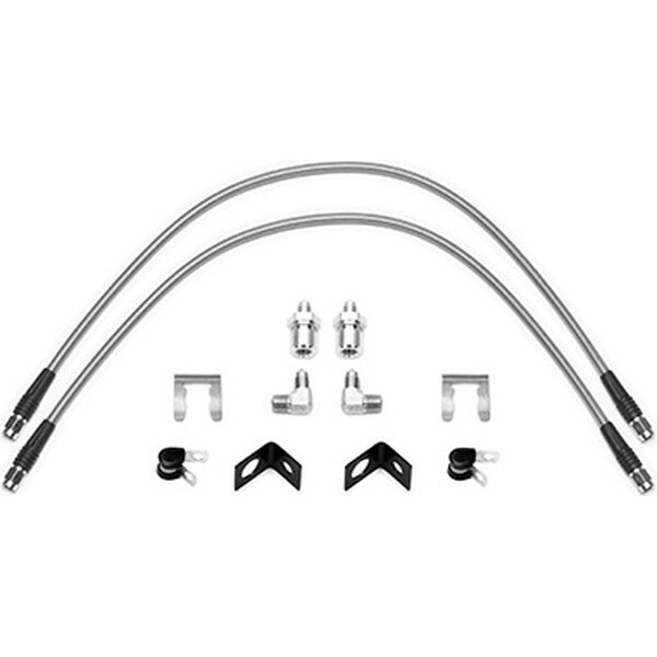 Tuotteen kuvausBrake Hose Kit - Flexline - DOT Approved - 25 in - 3 AN Hose - 3 AN Straight Inlet - 3 AN Straight Outlet - Fittings / Hardware - Braided Stainless - Front - GM Fullsize SUV / Truck 1988-99 - Kit