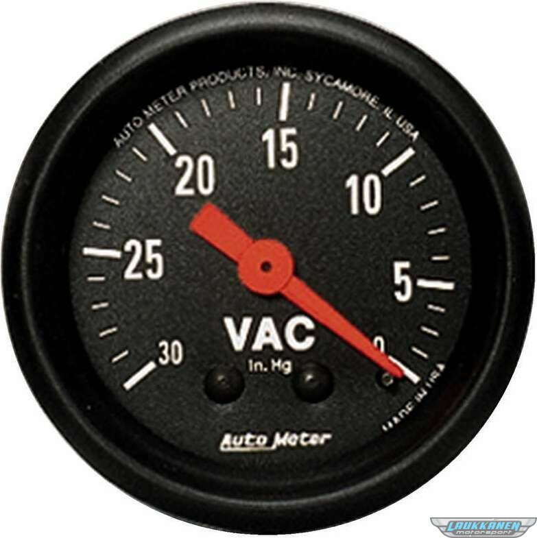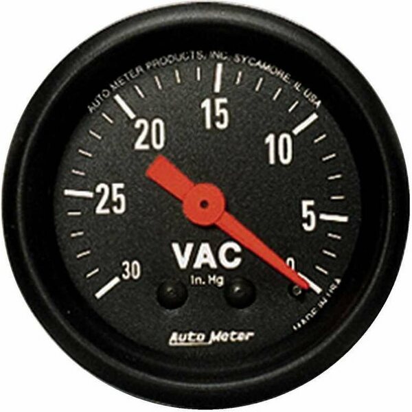 Vacuum Gauge - Z-Series - 0-30 in HG - Mechanical - Analog - 2-1/16 in Diameter - Black Face - Each
