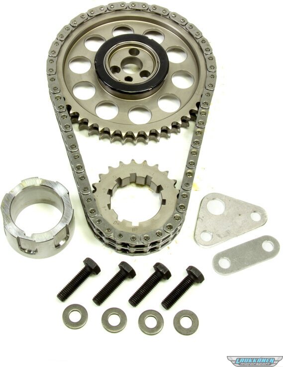 Tuotteen kuvausTiming Chain Set - Gold Series - Double Roller - Keyway Adjustable - Needle Bearing - Billet Steel - GM LS-Series - Kit