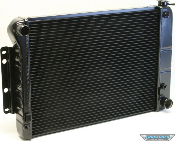 ProduktbeskrivningRadiator - Direct Fit - 27.5 in W x 18.5 in H x 3.25 in D - Single Pass - Driver Side Inlet - Passenger Side Outlet - Automatic Transmission - Aluminum - Black Paint - GM F-Body 1967-69 - Each