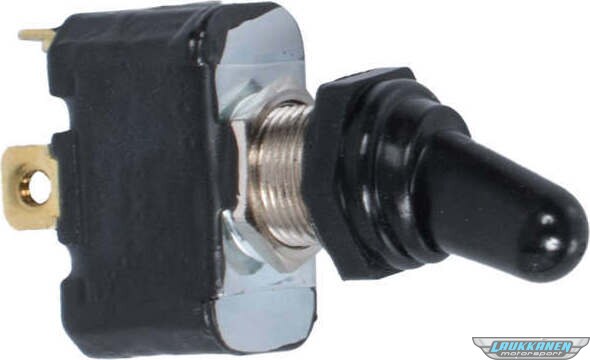 ProduktbeskrivningToggle Switch - On / Off - Momentary - Double Pole - Weatherproof Cover - 40 amps - 12V - Rubber Boot - Each